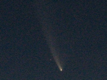 Diesen wunderschoenen Tag am Strand wollen wir gerne auch am Meer beenden und finden tatsaechlich ein huebsches Plaetzchen in unmittelbarar Naehe. Wir machen uns ein leckeres Abendessen und geniessen den Sonnenuntergang. Als wir so gemuetlich beieinander sitzen, faellt uns ploetzlich ein heller Punkt am Himmel auf. Einige Tage zuvor haben wir abends ein Paar getroffen, die mit Fernglas ueber den Strand gewandert sind. Ob der bereits eingetretenen Daemmerung, wundern wir uns, was die zwei da wohl beobachten. Wir kommen ins Gespraech und sie erzaehlen uns, dass in den naechsten 3 Wochen ein Komet, dessen Namen sie gerade nicht wissen, zu sehen sein soll. Wir fragen uns, ob es moeglich sein kann, diesen Komet von hier aus zu erblicken, doch in der Zwischenzeit hat sich ein Schweif hinter dem hellen Punkt gebildet, der nicht mehr zu leugnen ist. Im Laufe des Abends zieht der Komet seine Bahn und der Schweif erstrahlt quer uebers Himmelszelt. Wir koennen dieses unglaubliche Schauspiel mit blossem Auge verfolgen, noch nicht einmal ein winziges Woelkchen truebt unseren Blick. Noch nichts dergleichen haben wir bisher gesehen und sind vollkommen fasziniert von diesem kleinen "Wunder". Jetzt koennen wir auch die Weihnachtsgeschichte und die Bedeutung des Stern von Bethlehem besser nachvollziehen. Der Komet geht schliesslich hinterm Horizont unter, aber der Schweif bleibt weiterhin gut sichtbar. Wir harren aus, bis uns fast die Augen zufallen und verkruemeln uns unwillig ins Auto.