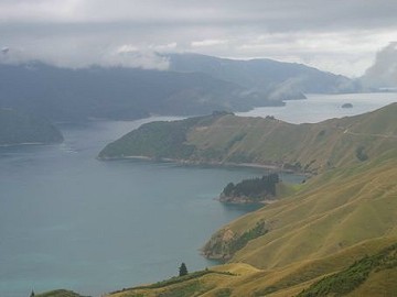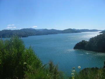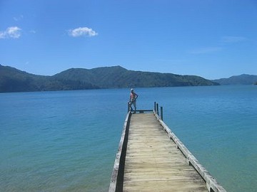 Am naechsten Tag fahren wir noch in die Malborough Sounds und zum beruehmt-beruechtigten Queen Charlotte Drive. Wir machen auch hier eine kleine Wanderung und werden mit einer Ueberraschung zur Mittagspause belohnt. Wir sitzen auf einem Steg im Wasser und ploetzlich schwimmt ein Schatten in Form eines Rochen vorbei. Bei naeherem Hinsehen handelt es sich tatsaechlich um einen Rochen. Wir sind ganz ueberrascht und verfolgen seine Spur mit Interesse.