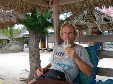 Auf Gili Meno ist wirklich nicht viel los und die schaetzungsweise knapp 20 anwesenden Urlauber koennen alle in ihrem "eigenen" Restaurant sitzen. Wir verbringen unsere Zeit mit baden im Meer, lesen, Inselerkundung zu Fuss, lecker essen und Milkshakes schluerfen, ... wir leihen uns auch mal Masken und Flossen, aber das Schnorcheln macht uns hier leider keinen besonderen Spass. Entweder sind wir am falschen Spot oder verwoehnt durch Fiji. Jedenfalls sind die Korallen fast alle tot und es gleicht eher einem Friedhof, was uns wenig Freude bereitet. El Nino muss hier einiges verwuestet haben und was ihm nicht zum Opfergefallen ist, haben die Fischer mit Dynamit zerstoert. Schade, schade. Dafuer machen wir eine aufregende Entdeckung am Strand. Wir sitzen nichts ahnend halb im Wasser, halb auf dem Sand als ploetzlich eine schwarz-weiss geringelte Wasserschlange vorbeischwimmt. Wir springen natuerlich auf und die Schlange schlaengelt gemuetlich vorbei und verschwindet schliesslich zwischen den Algen. Damit hatten wir nun wirklich nicht gerechnet.