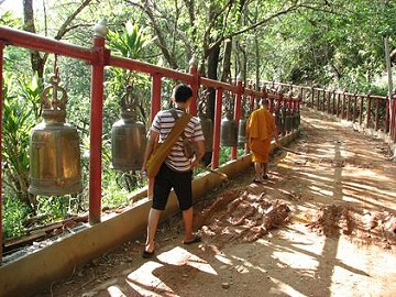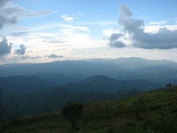 auf einen Hügel, der einen herrlichen Ausblick auf das angrenzende Burma bietet. Sehnsüchtig blicken wir